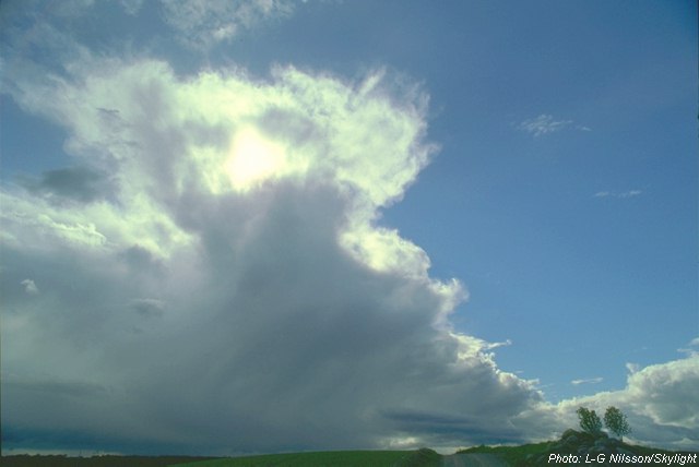 Om det är kallt och fuktigt i atmosfären kan stackmolnen fortsätta att växa och bli större. Molnen växer så länge de är varmare än den omgivande luften. Efterhand får de ett blomkålsliknande utseende och sträcker sig allt högre upp på himlen. Om molnen blir så stora som på den här bilden redan på förmiddagen, är det risk för regnskurar på eftermiddagen.