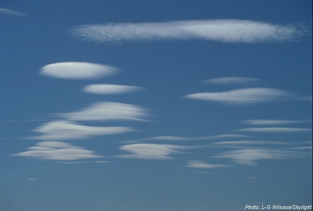Ibland kan vackra linsformade böljemoln uppträda på himlen. De bildas i lä av bergkedjor och kallas också lävågsmoln. När vinden blåser över bergen kan luften röra sig i vågor flera hundra kilometer efteråt. I vågtopparna bildas linsmoln. En förutsättning för att linsmoln skall bildas är att atmosfären är stabil. Inga dramatiska väderförändringar att vänta alltså.