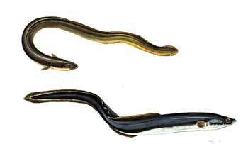 The eel's body looks like a snake. The scales are small. The colour of the eel vary in different stages of its development. The fully grown eel, ready to migrate far out in the Atlantic Ocean in order to spawn, has a black back, metal shiny sides and a white belly. The females are larger and can be over one metre long. The males are normally only half as long.