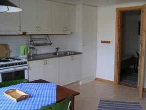 Sjöugglan is a basement flat in Storstugan, built in 1999. The flat has 30 m2 of livingspace. It has two sleeping alcoves and a larger kitchen as well as WC and shower. The house is located south of the village and there is a patio with a view of the village. Distance to the sea is about 50 metres. The kitchen is equipped with refridgerator, freezer and simple kitchen appliances.